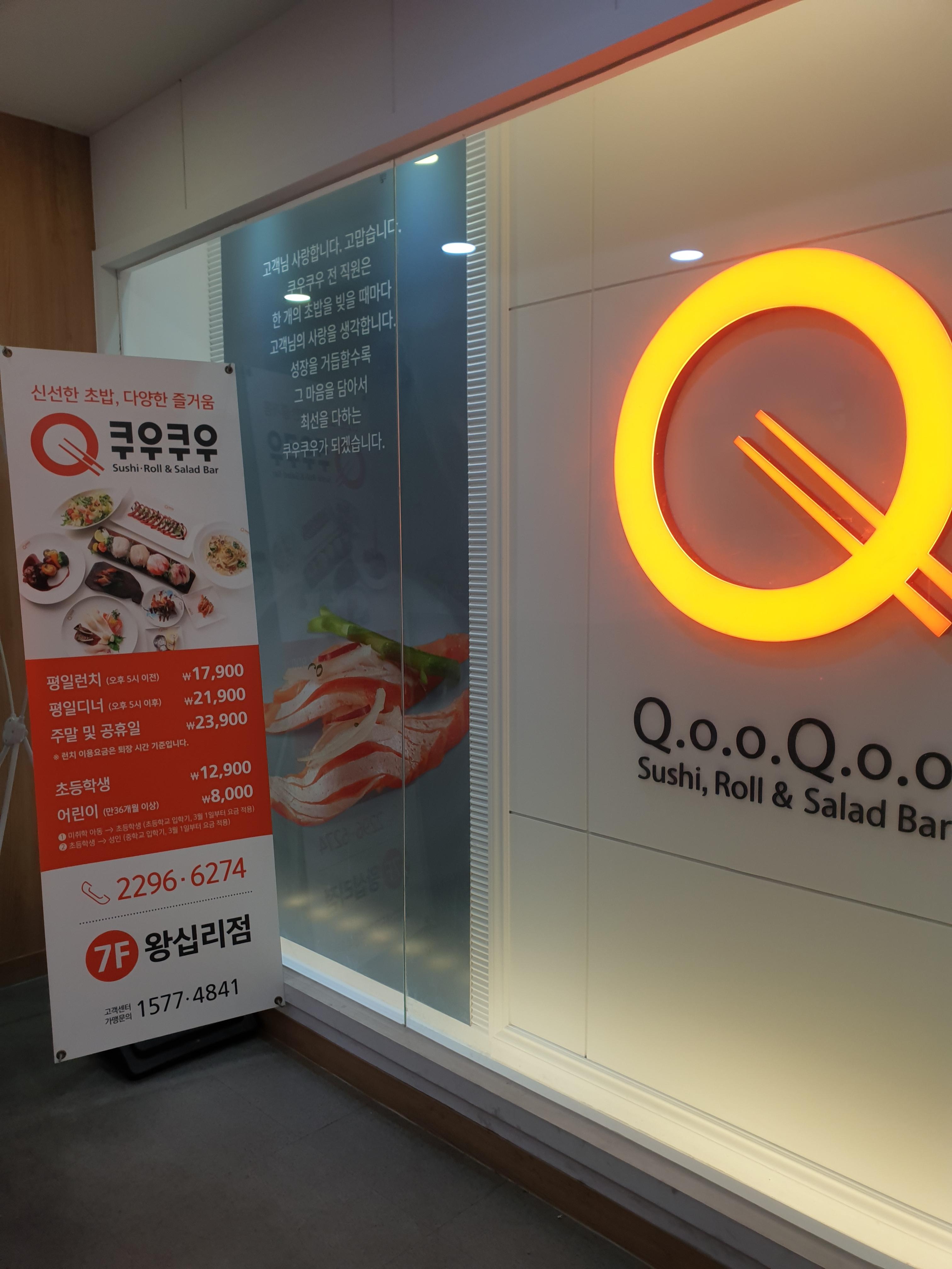 연어왕국에 들어가서 혼자라고 했더니 편한 곳에 앉으라고 했다. 그래서 혼자도 되는구나 싶어서 주문할 때 무한리필 1인과 소주를 시키려고 했더니 무한리필은 2인이상만 된다고 혼자는 리필도 안 되면서 가격은 더 비싼 연어 사시미로 먹어야한다고 했다. 그래서 그냥 나왔다. 그리고 다음 후보지였던 쿠우쿠우로 향했다.