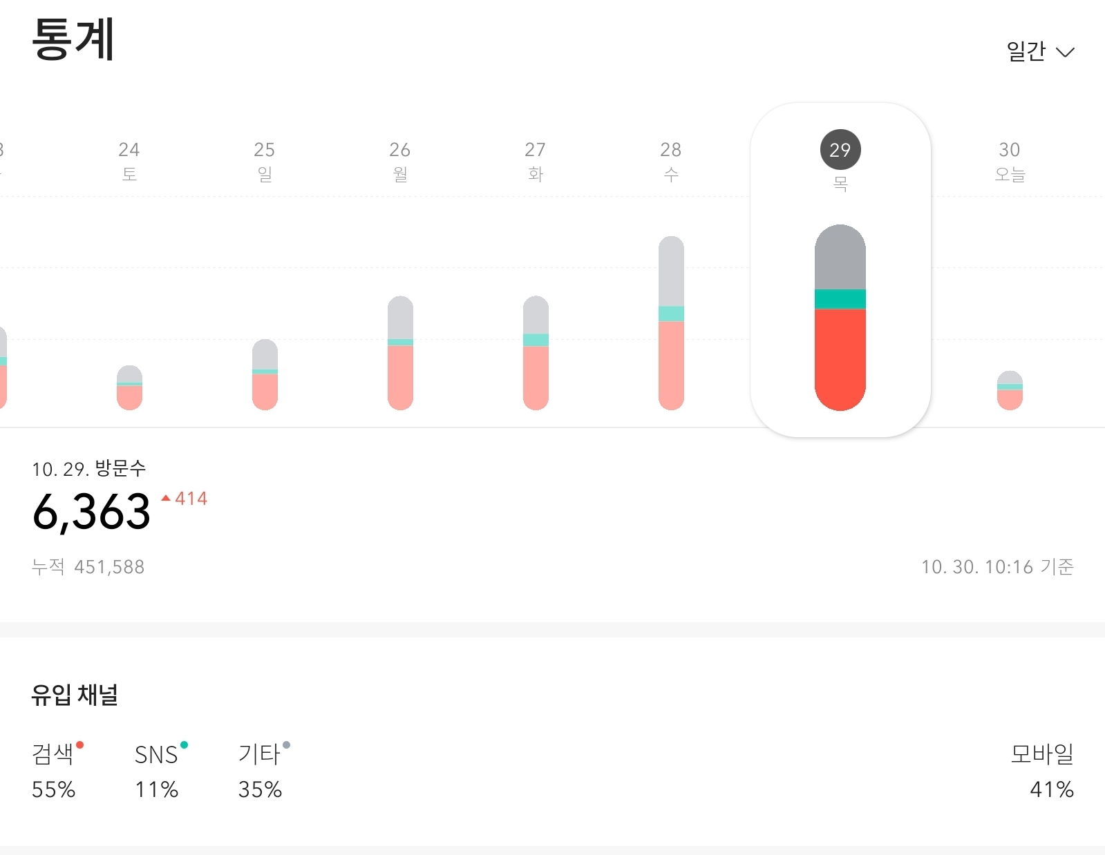 지난 10월 7일 5천명을 돌파한지 약 3주만이다. 전보다 방문자가 줄어든 것 같더니 그제부터 다시 증가하여 어제 6천명을 넘는 신기록을 세우게 되었다. 계속해서 증가하면 좋겠다.