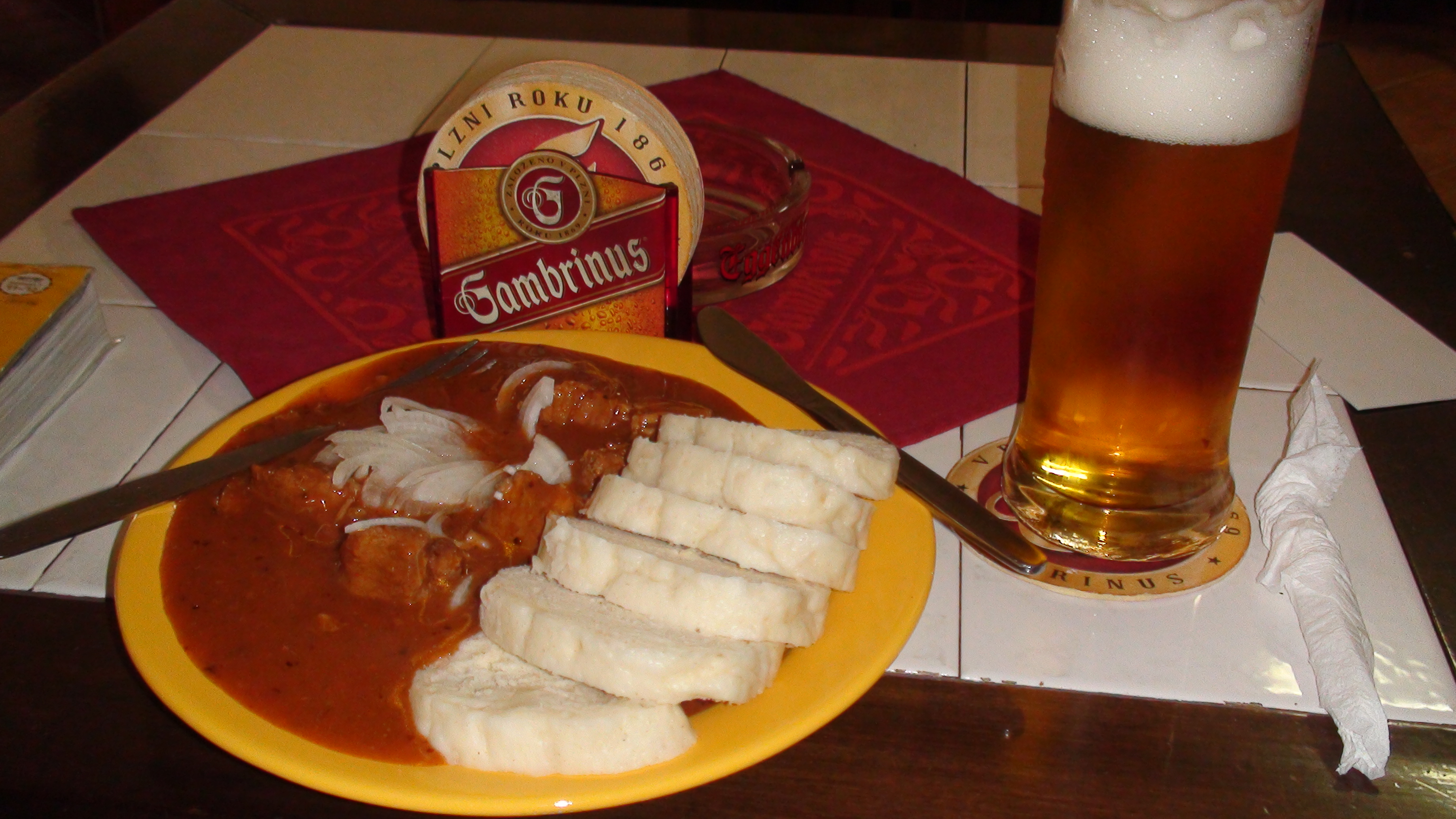 오스트리아로 가는 기차에서 오전 10시 쯤 아점으로 먹은 체코 요리 굴라쉬와 맥주