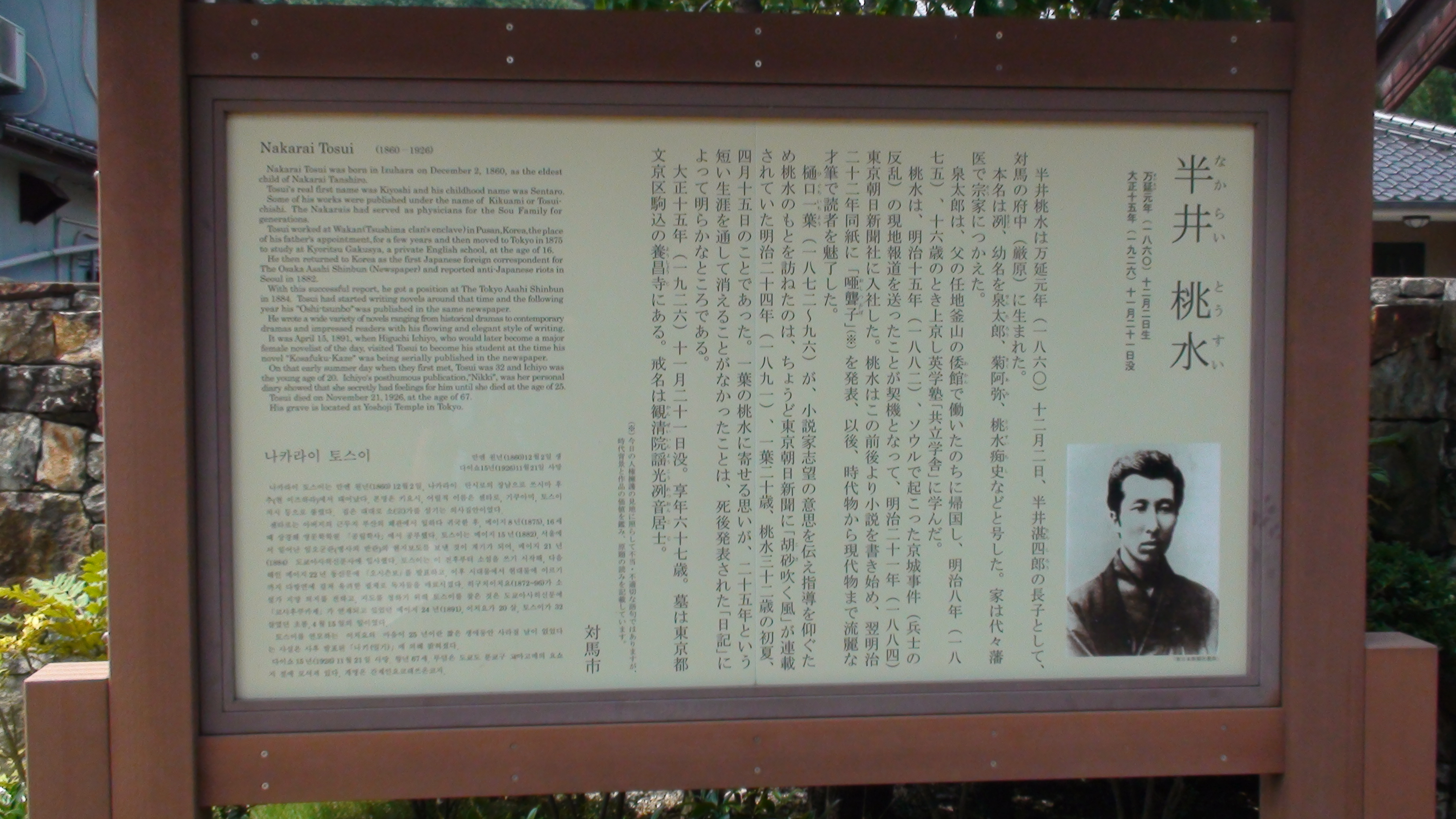 부산항, 이즈하라 국제여객터미널, 이즈하라 거리, 슈센지(수선사), 최익현 순국비, 콘비라 신사, 고쿠분지(국분사), 나카라이 토스이 기념관, 나카무라 지구, 하치만구 신사, 이케 신사, 점심으로 먹은 모스버거, 시미즈 산성터 주변관광안내판, 고려문, 조선통신사의 비, 성신지교린의 비, 가네이시 성터, 덕혜옹주 결혼봉축기념비, 가네이시 정원, 반쇼인(만송원), 햐구간기(백안목, 132개의 돌계단길), 큰 삼나무, 오타마야(소(宗)가 무덤), 세이잔지(서산사), 케운지(경운사), 하마도노 신사, 타테가미 바위, 쓰시마 관광특산물센터, 오후나에 터, 표류민 집터, 방화벽, 이마야시키 공원 등