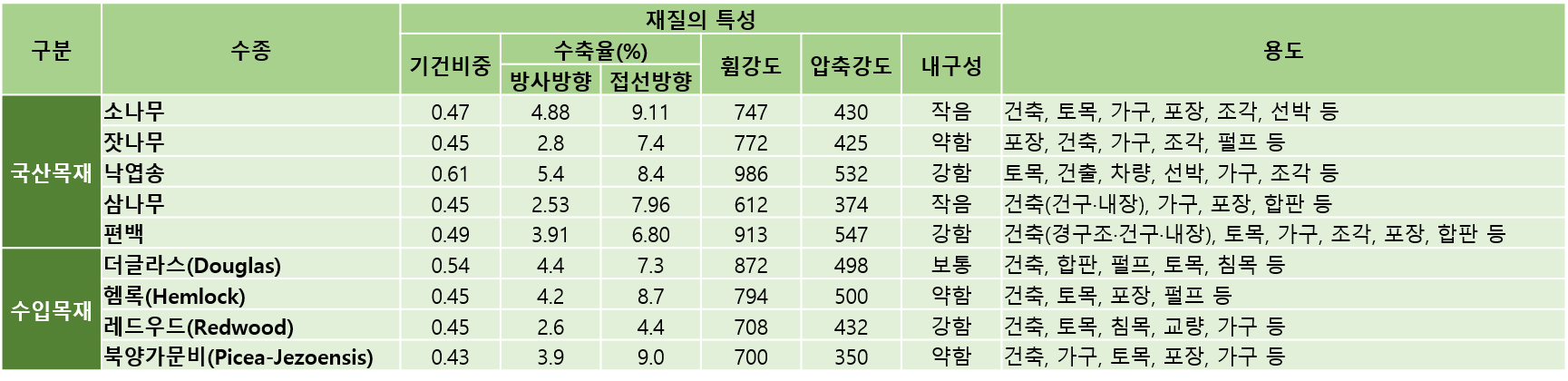 국산목재와 수입목재 비교