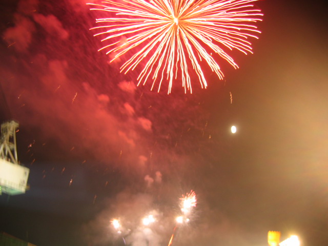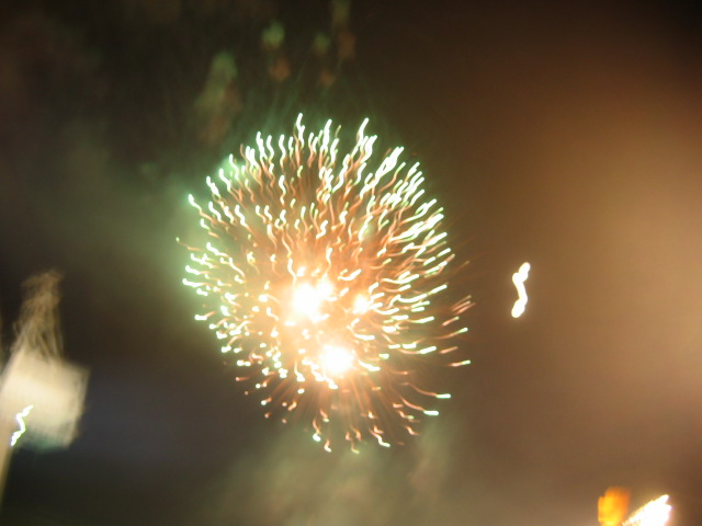 어느덧 밤이 되었고, 9시반이 지나면서 정확히 누군지 기억나지 않지만 하여튼 어떤 아줌마 트로트 가수가 노래를 부르고 있는데 불꽃놀이가 시작되었다. 마지막을 알리는 것 같았다. 사람들은 노래가 끝나지도 않았는데, 끝났다며 나가기 시작했다. 나는 불꽃놀이를 사진으로 찍고 있었다.